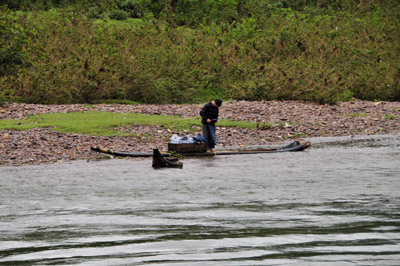 漓江(りこう)下り4時間の内、雨が降ったのは1時間足らずで、水の量も丁度よく「今日のお客さん 超ラッキーよ!」 |